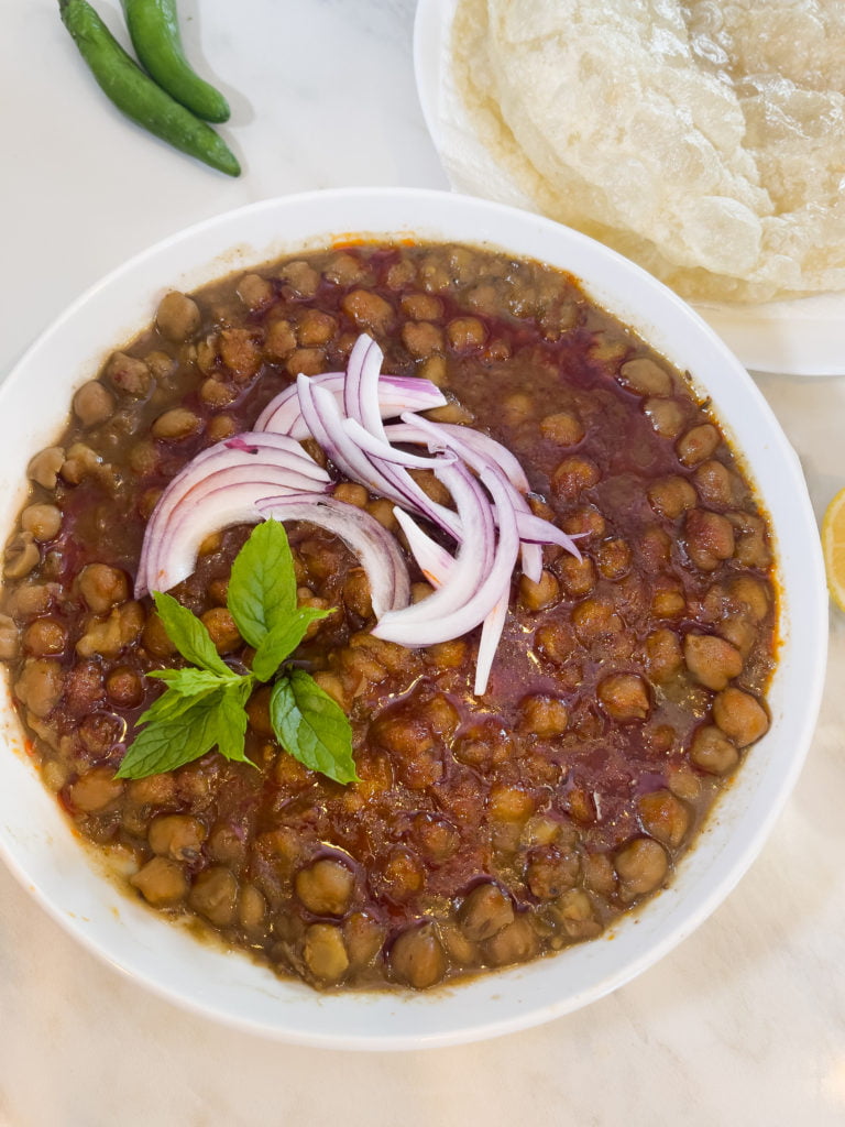 Chick Peas prepared with traditional spices and the Lahori Recipe.