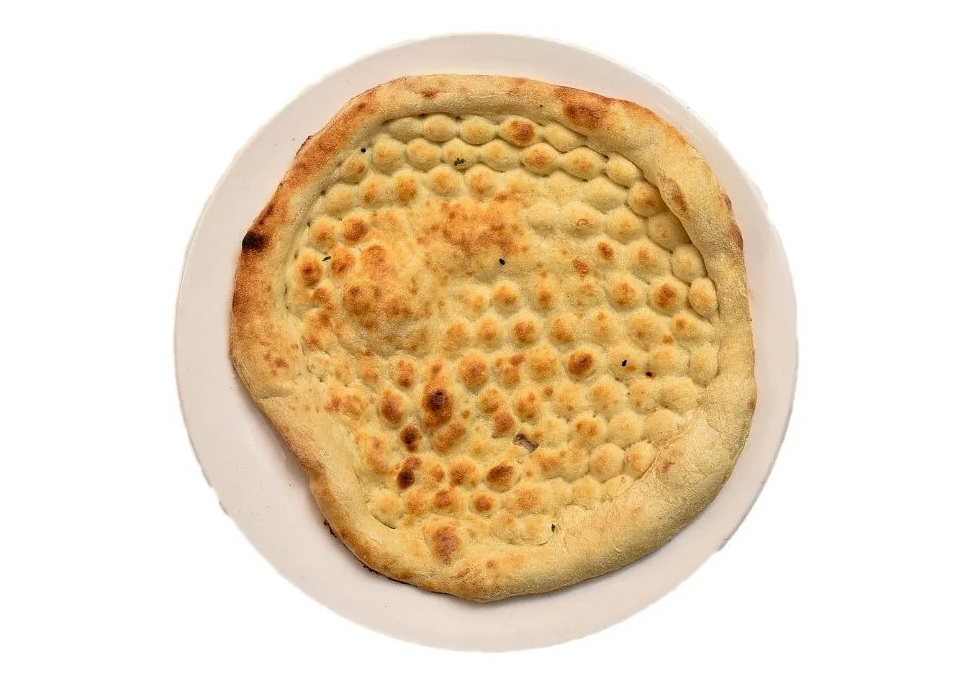 A single-layer bread with a light and slightly fluffy texture and golden-brown spots